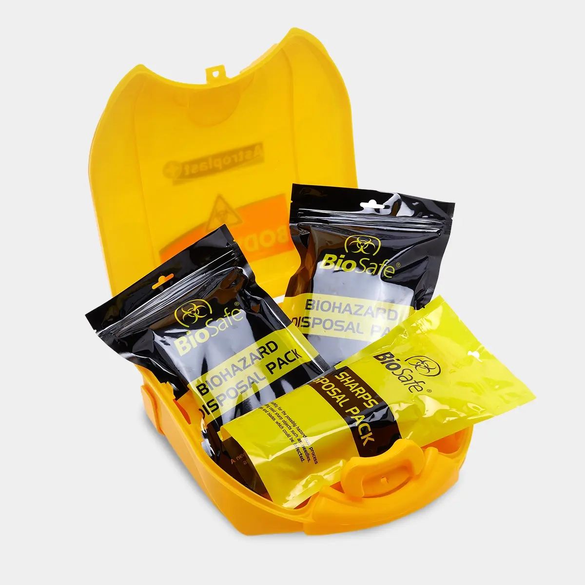 This kit contains two full body fluid spill application pack for the safe clean-up of blood, vomit and other body fluids. It also includes one sharps disposal application packs that allow used needles or other sharp objects to be collected and disposed of safely. Each application is supplied as an individual set so incidents can be managed quickly without the need to open or compromise the other components.