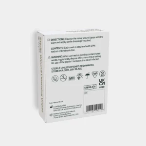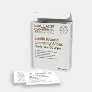 Wallace Cameron Sustainable Sterile Saline Wipes are used to cleanse dirt and debris from wounds before applying plasters or dressings.